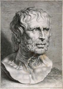 Pseudo-Sénèque : on a longtemps cru que le buste représentait le philosophe romain, jusqu’à la découverte en 1813 d’un portrait inscrit portant le nom de Sénèque. Pourrait en fait représenter Hésiode. Copie romaine d’un original hellénistique. |