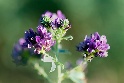 – Cette plante est très riche en éléments indispensables : acides aminés, vitamines (A, B, C, D, E, K) et oligo-éléments (Calcium, Phosphore, Fer, Magnésium, Sélénium et Silice). Elle fait baisser le taux de cholestérol du sang et possède un principe hormonal, le coumestrol.